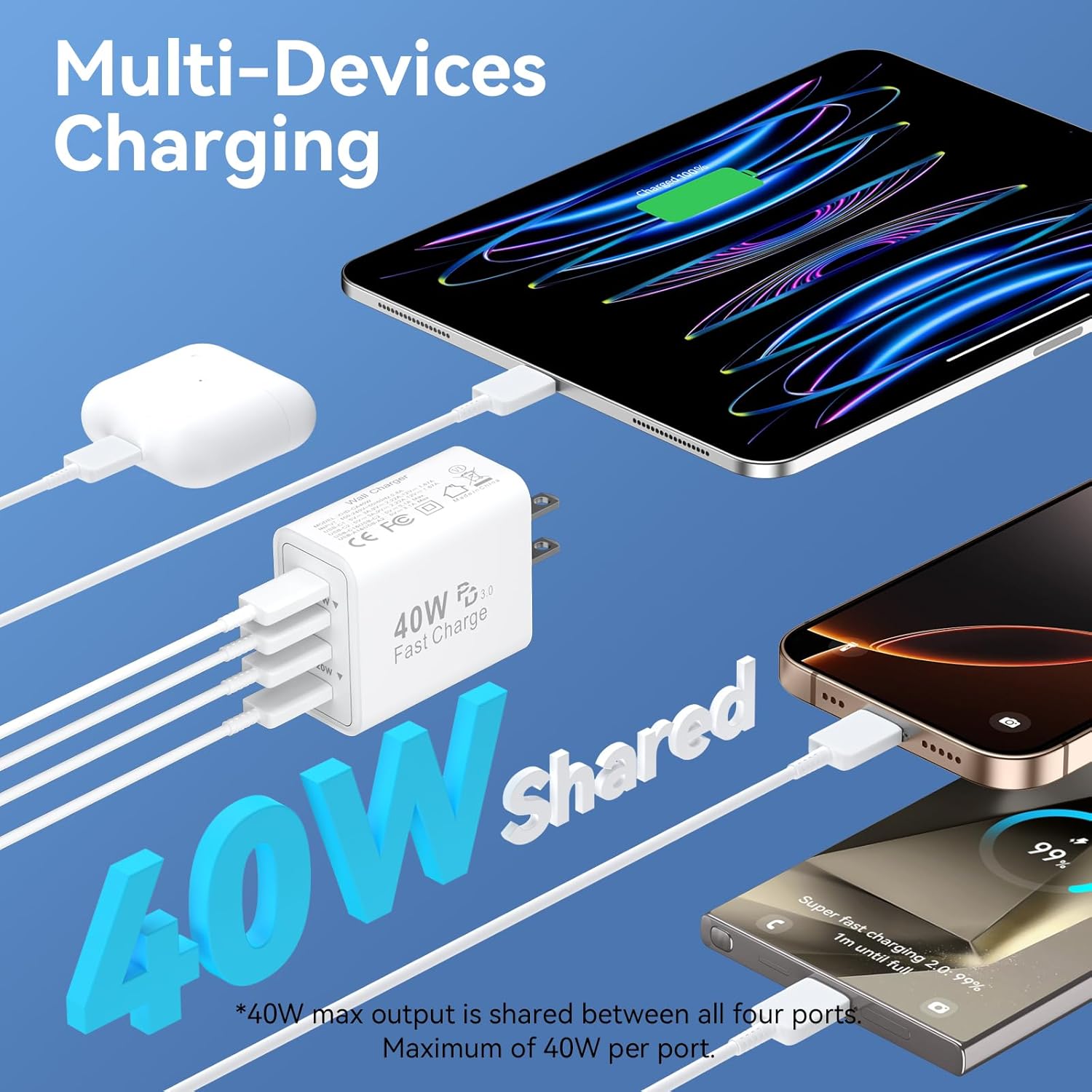 【Excessive Velocity Charging Dice for 4 Gadgets】With 4 USB-C ports, effortlessly cost your cellular phone, pill, and earphone all of sudden from a single charger. Join a single machine to cost as much as 40W. All this energy comes put in in a pocket-friendly compact physique, to go wherever the journey takes you. Ultimate for dwelling, workplace, and on-the-go.