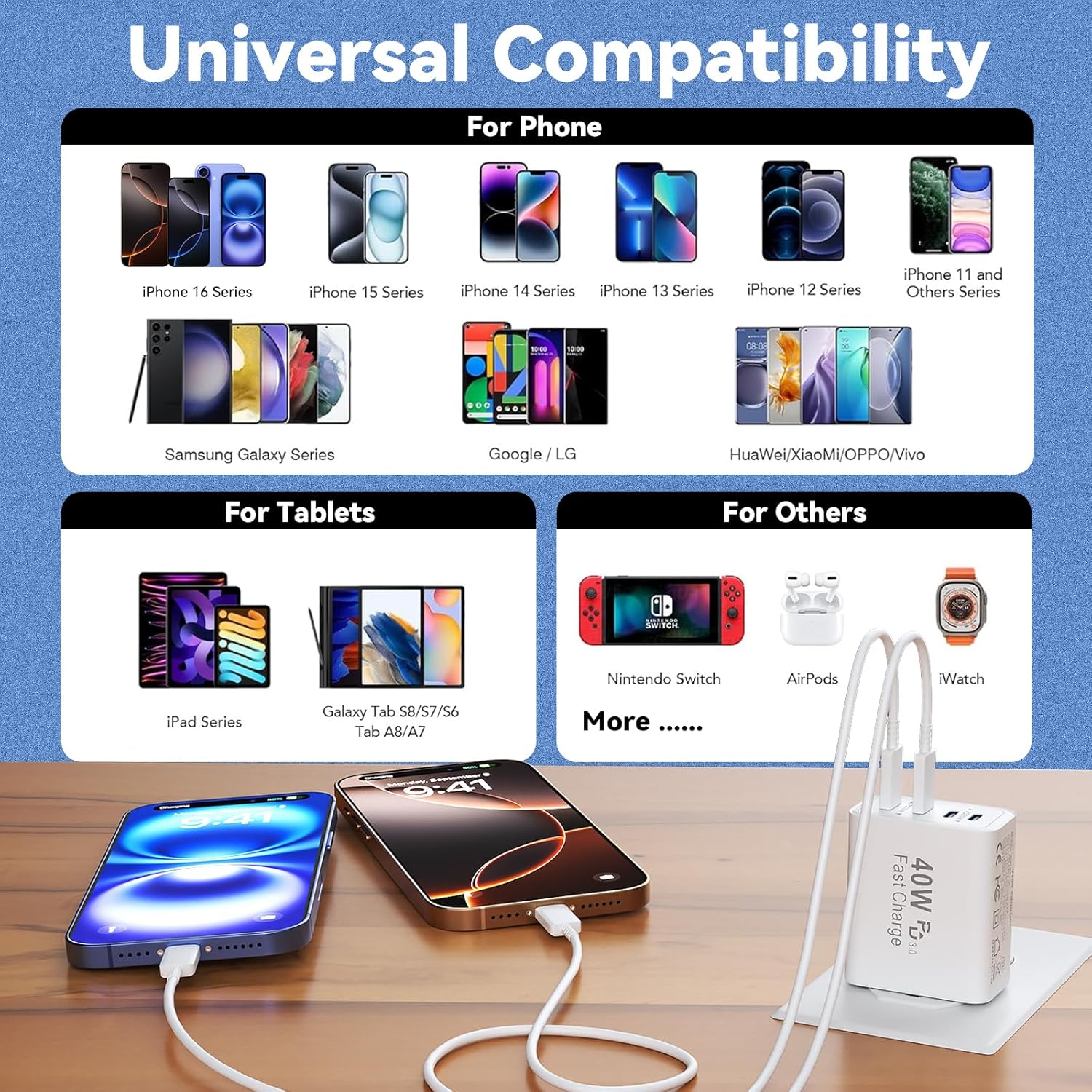 【What You Get】40W 4 ports USB C Wall Charger block*2. (No cable) Lengthy-time Pleasant Help! When you have any questions, do not hesitate to contact us! We’re at your service 24 hours!