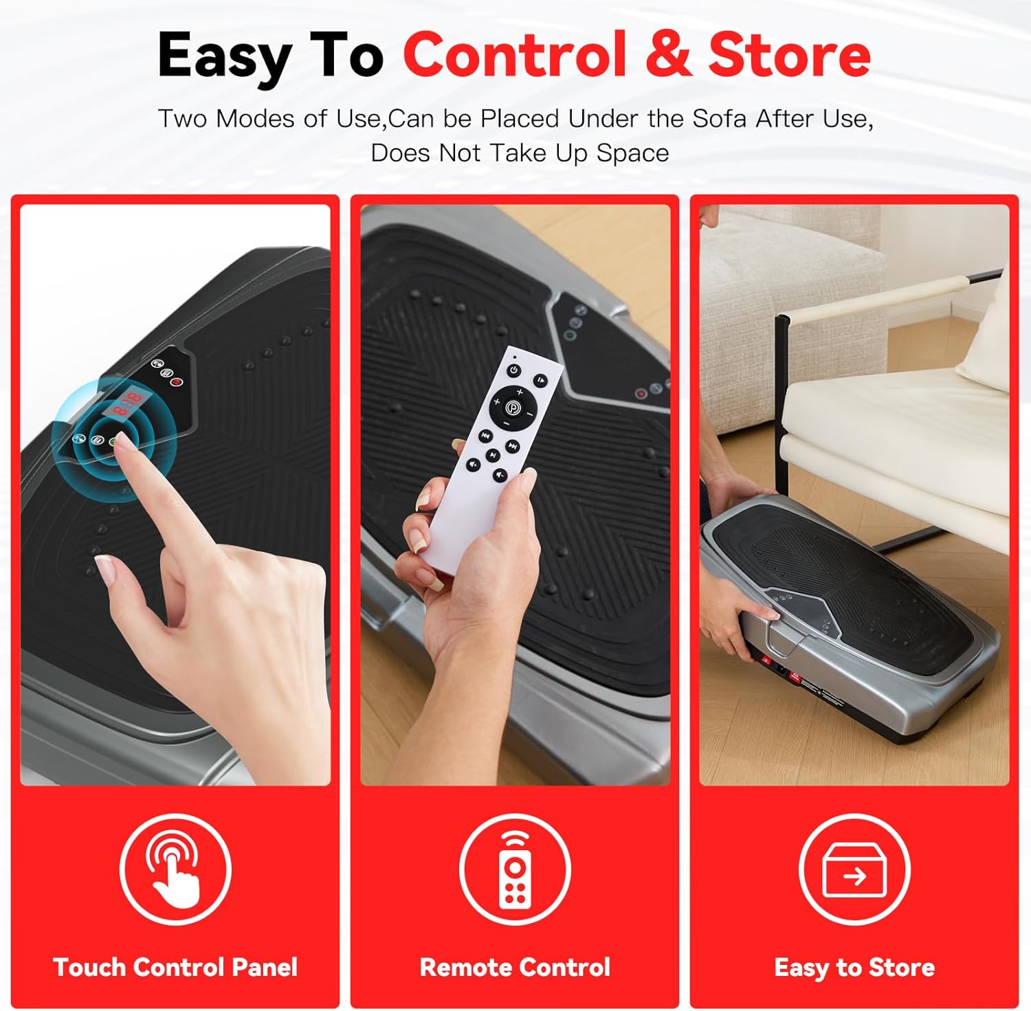 【Simple to Use & Save House】Outfitted with a distant management and LED show, one-button mode switching with out bending over. The light-weight vibration plate train machine will be saved below the mattress, from the workplace to the lounge, begin environment friendly coaching anytime, anyplace