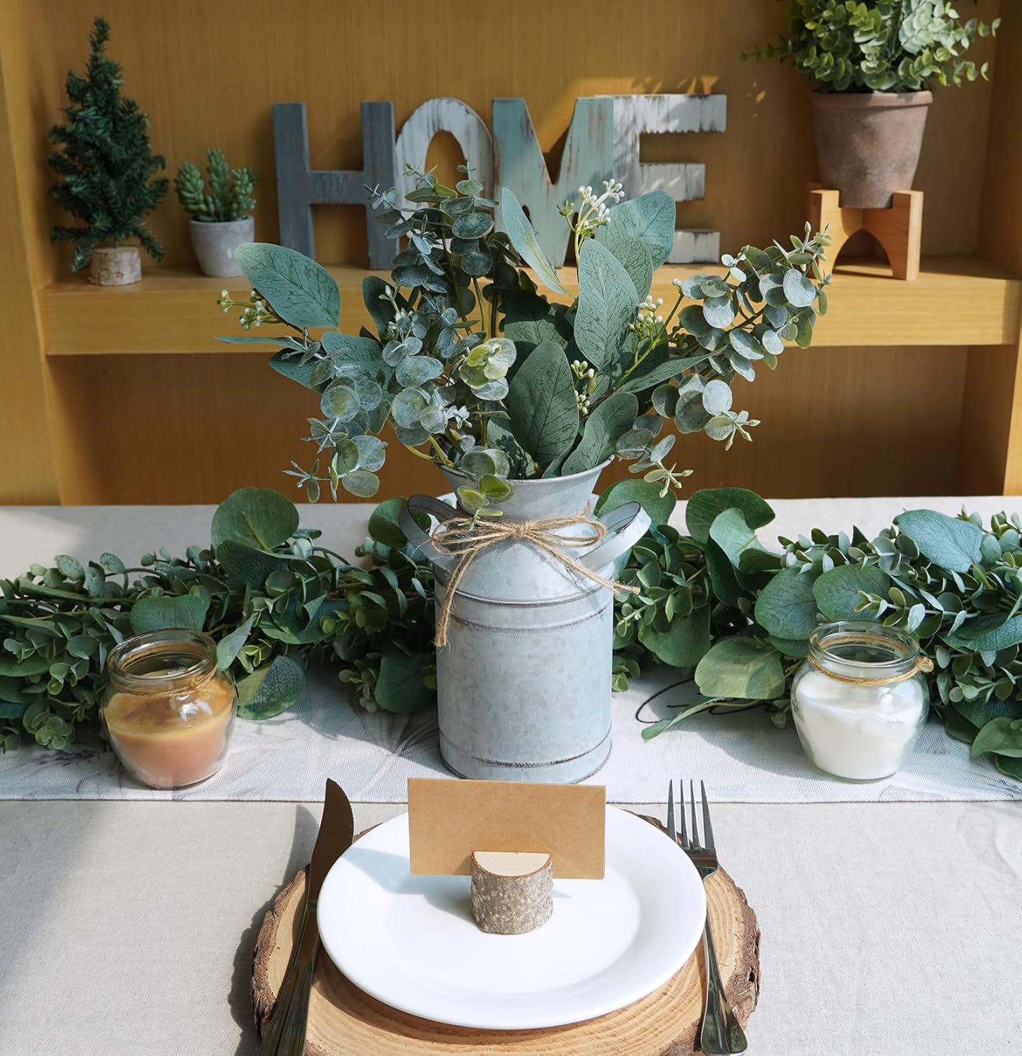 Materials: Blended fake eucalyptus leaves sprays are fabricated from silk and plastic. The plastic stems are wired so you may twist them into any form you need. Farmhouse milk vase is fabricated from galvanized metallic. It is light-weight for straightforward show and durable sufficient to help the vegetation. No watering or extra upkeep is required, fake eucalyptus stems in milk vase will all the time add a vibrant ambiance to your house in any season.