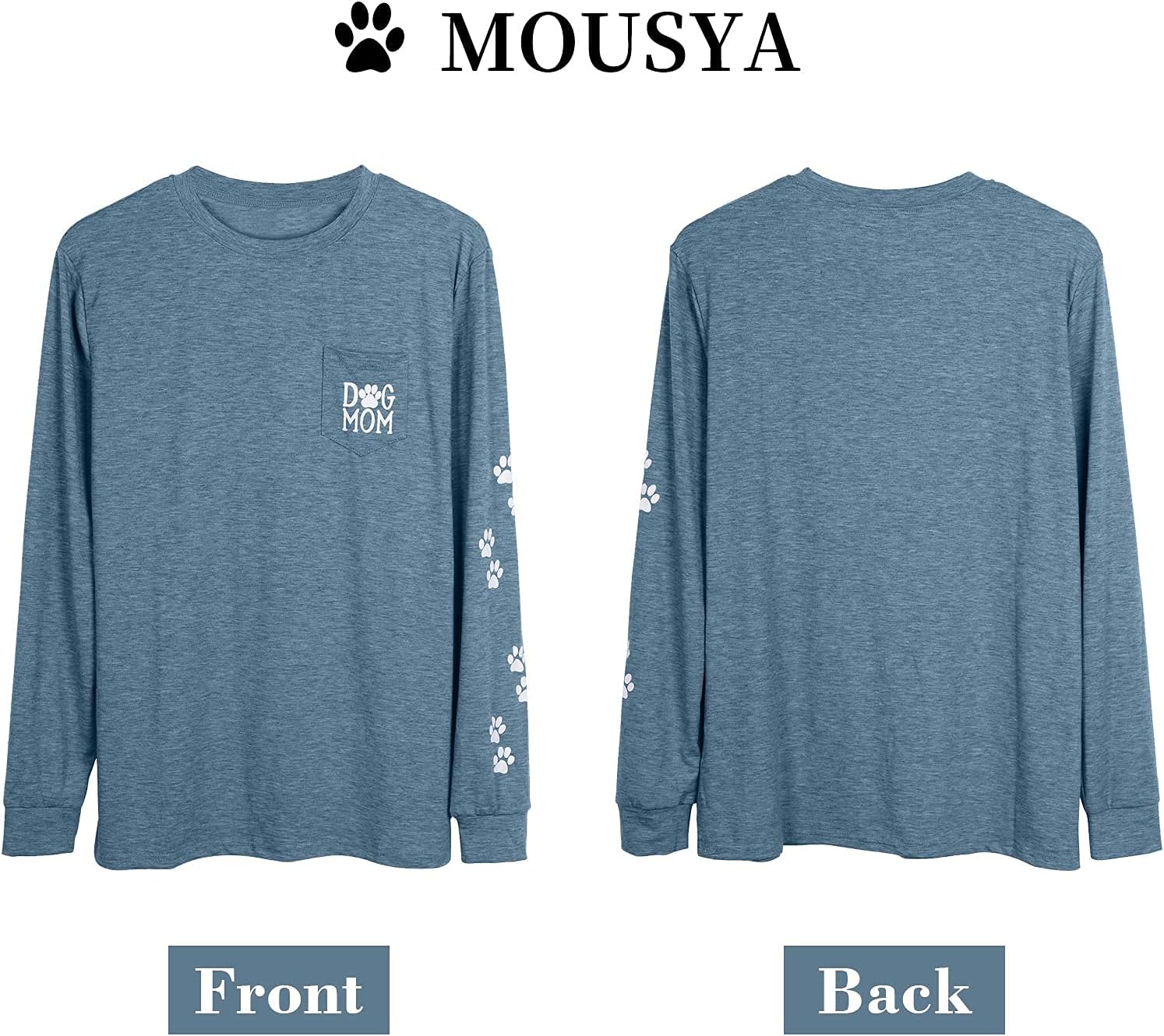 Girls Canine Mother Shirt Humorous Canine Paw Graphic Tee Patch Pocket Pullover Informal O-neck Lengthy Sleeve Shirt