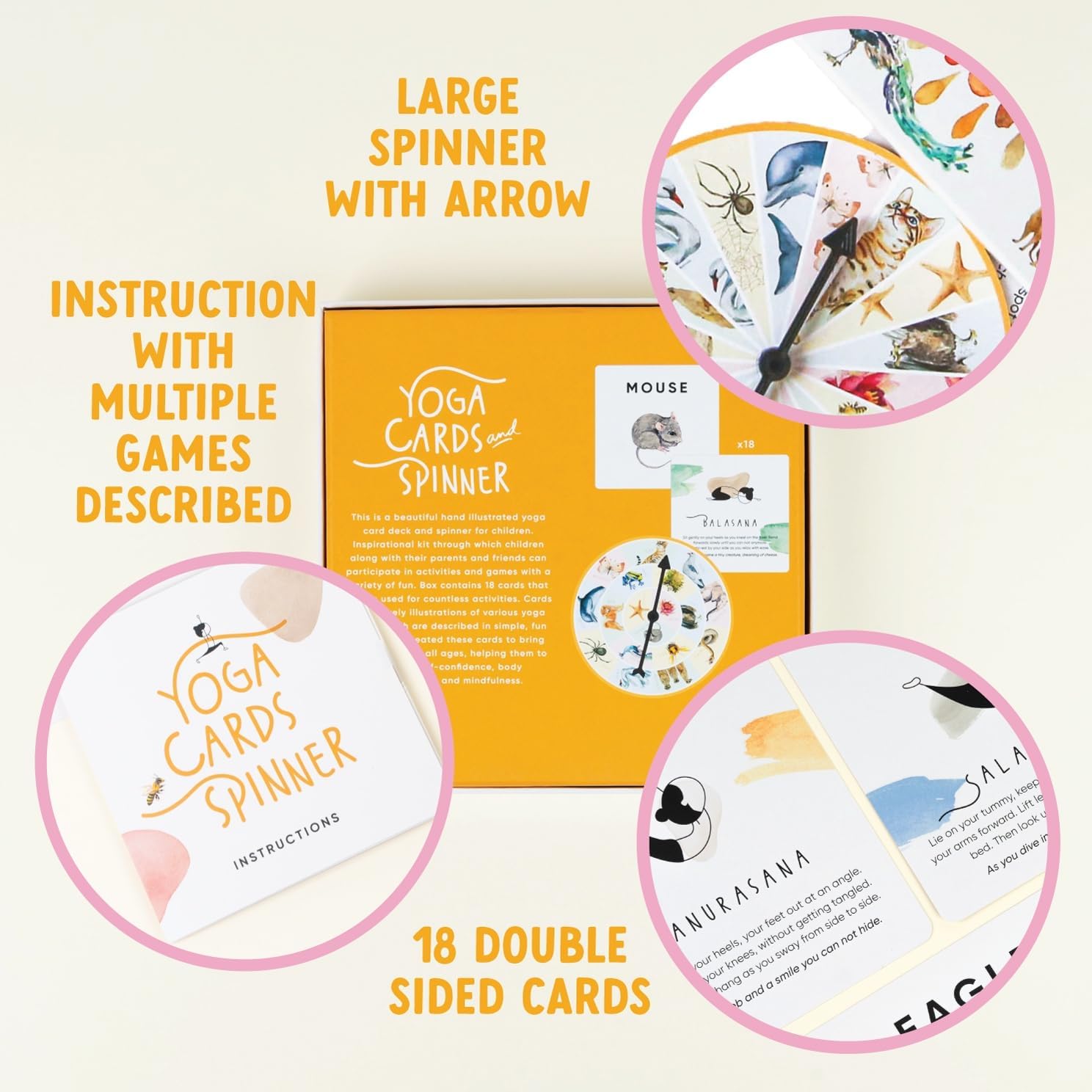 Our recreation features a sturdy, heavy cardboard spinner with an arrow that provides a component of enjoyable and randomness to every yoga session, serving to to information children via their yoga journey with thrilling twists.